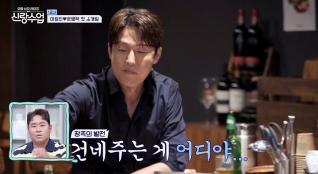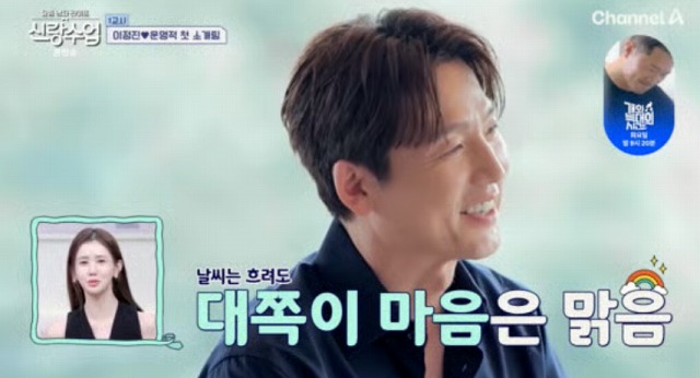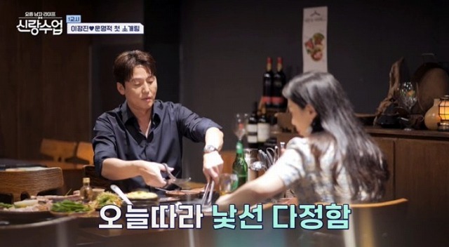 고기를 직접 구워 그녀의 접시에 올려주고, 동치미를 덜어주는 이정진의 모습은 그동안 보여주지 않았던 부드러운 면모였습니다.