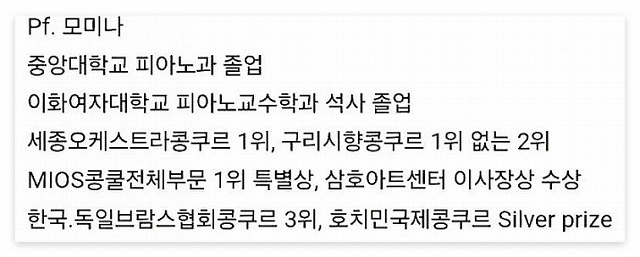 - 중앙대학교 피아노과 졸업