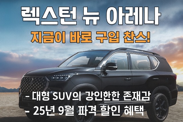 그렇다면 렉스턴 뉴 아레나는 어떤 매력을 지닌 SUV이며, 이번 할인 조건은 어느 정도일까요?