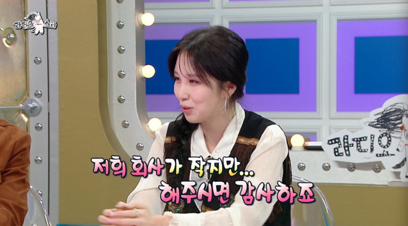 그러면서 “저희 회사가 작지만… 인수해 주시면 감사하겠다”고 너스레를 떨어 스튜디오를 웃음바다로 만들었다.